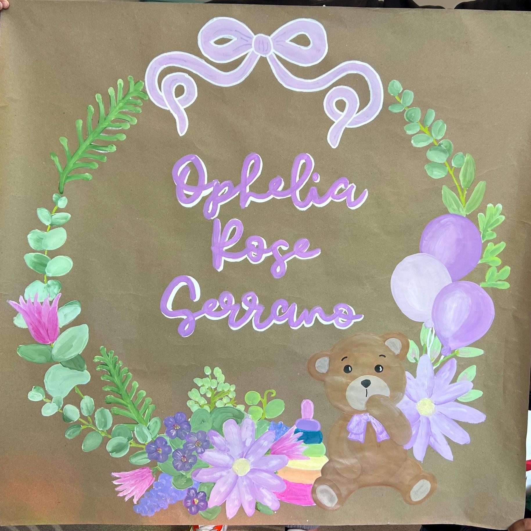 Hand-Painted Personalized Baby Name Banner | Custom Floral Teddy Bear Wall Art
